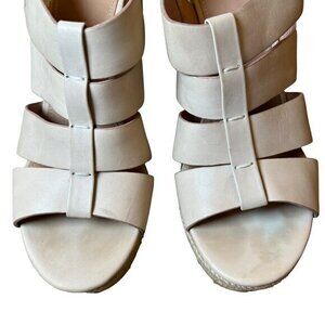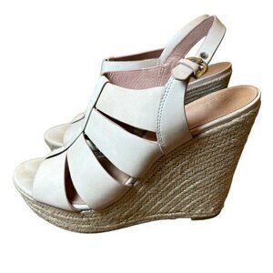 Saks Fifth Avenue Leather Cream Platform Shoes Espadrille Sandals Strappy 10