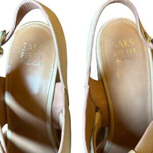 Experience luxury and style with Saks Fifth Avenue Leather Cream Platform Espadrille Sandals. These strappy size 10 shoes are the perfect addition to any wardrobe, adding a touch of sophistication to any outfit.