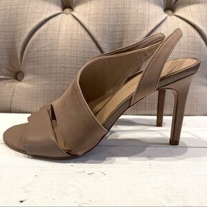 Saks Fifth Avenue Leather Peep Toe Slip-On Stiletto Heel Sandal