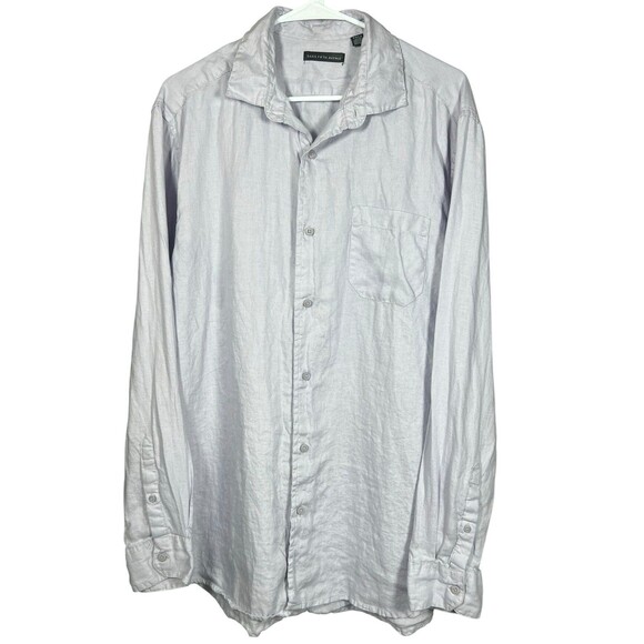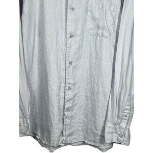 Saks Fifth Avenue Mens 100% Linen Shirt L Light Gray Long Sleeve Button Up Casual
