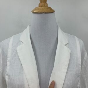 Saks Fifth Avenue Linen Blazer Womens M Medium White Open Front Notch Collar