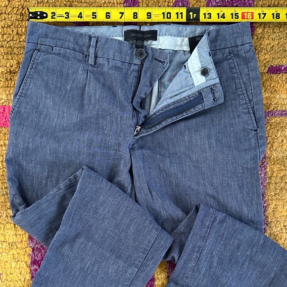 Stylish blue-gray trousers from Saks Fifth Avenue. Perfect for a refined appearance. Based on the tailoring, I would guess these were originally suit separates. They can be dressed up or down, they are chinos but can also look like a very expensive pair of jeans. Excellent used condition.