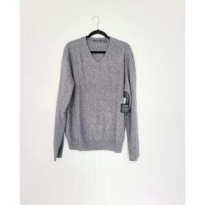 Brand New With Tags Saks Fifth Avenue Gray Cashmere V neck Sweater. Long sleeve Size M