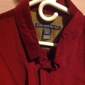 Saks Fifth Avenue Men's Large Red Corduroy Long Sleeve Shirt - Good Condition