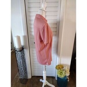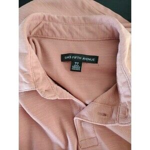 This Saks Fifth Avenue Men's Unisex Modal Polo Shirt is a classic and designer piece perfect for casual occasions or activities like walking, school, or golf. The polo shirt features a solid orange color with a light fabric wash and a super soft texture, making it comfortable for all-day wear. With short sleeves and a regular fit size S, this polo exudes a preppy style suitable for both men and women looking for a stylish and versatile addition to their wardrobe. The color is similar to a light salmon. EUC no known defects.