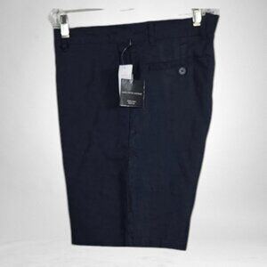 Saks Fifth Avenue NWT 34 Men's Linen Flat Front Casual Shorts Navy Blue
