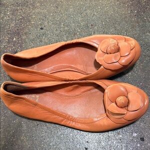 These Saks Fifth Avenue flats in a striking orange color feature a sleek and timeless design. With a comfortable flat sole and a rounded toe, they offer both style and ease for everyday wear. The minimalist silhouette makes them a versatile addition to any wardrobe.