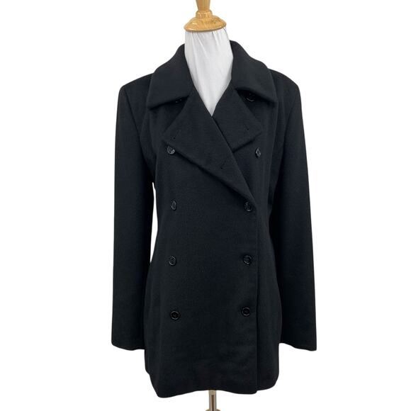 SAKS FIFTH AVENUE PEACOAT WOMENS 10 BLACK FLEECE SHOULDER PADS OUTERWEAR BLAZER