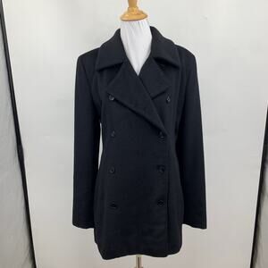 Saks Fifth Avenue Peacoat Womens 10 Black Fleece Shoulder Pads Outerwear Blazer