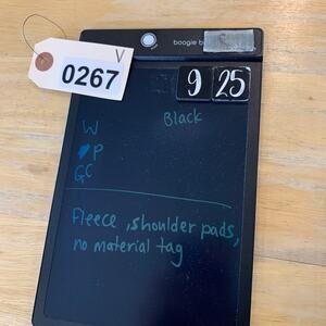 Fabric good condition, fleece, shoulder pads, no material tag, feels like soft wool blend