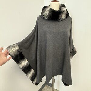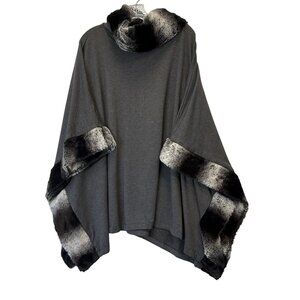 Saks Fifth Avenue Poncho Faux Fur Trim Gray OS Old Money Winter Sweater NWT