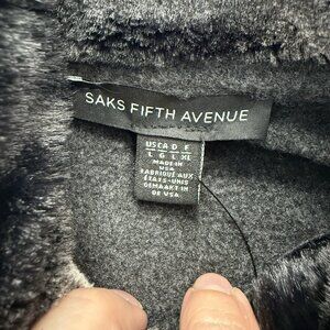 Saks Fifth Avenue Poncho Faux Fur Trim Gray OS Old Money Winter Sweater Cape NWT