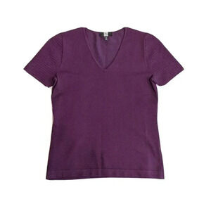 Saks Fifth Avenue Purple V Neck Stretch Top Size Medium Viscose Blend