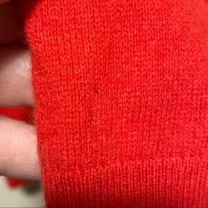 Saks Fifth Avenue Red Cashmere V-Neck Sweater, good condition, does have a few small holes, one near armpit area and one near front of sleeve (see pics), size medium