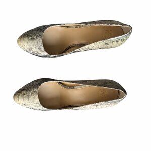 Saks Fifth Avenue SELINA Reptile Pumps 9 Beige, Black, Grey, Ivory Snakeskin Print Shimmer Accenting In The Light Leather Upper, Leather Sole, almond Toe,