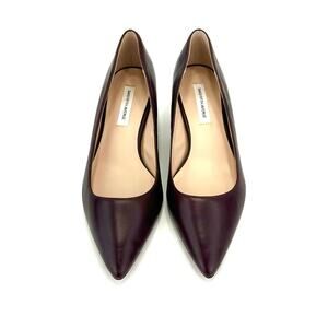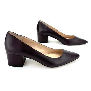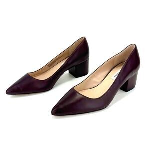 🐠 Saks Fifth Avenue Sandra Block Heel Pumps Size 9 Mulberry/Red Leather Pointed Toe Comfy Heels, New