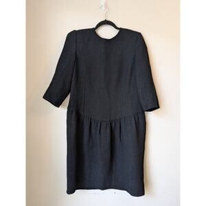 Saks Fifth Avenue Sheath Midi Dress Modest Oversize 3/4 Sleeves BLACK .