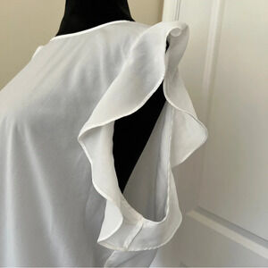 Saks Fifth Avenue Sheer Ruffle Pull-Over Sleeveless Blouse White Women's XL