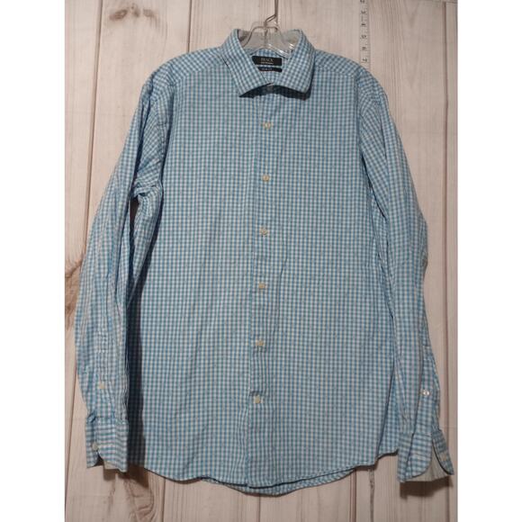 Black Saks Fifth Avenue Shirt Mens XL Blue White Gingham Check Slim Fit Long Sleeve