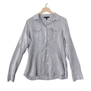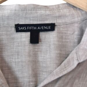Saks Fifth Avenue Greige Linen Blend Button Down Shirt Size M Minimalist Classic