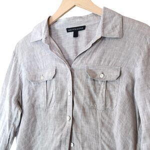 Saks Fifth Avenue Shirt Womens Fits S Greige 100% Linen Casual Long Sleeve