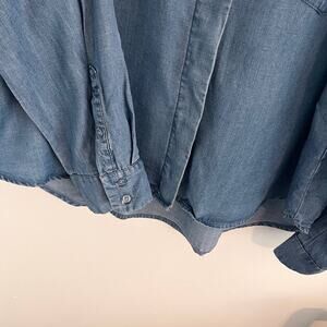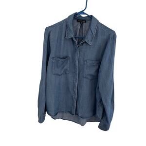 Saks Fifth Avenue Shirt Womens Size Large Blue Chambray Button Up Long Sleeves