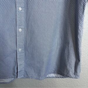 Saks Fifth Avenue Short Sleeve Button Down Men's Blue & White Patterned Shirt XL