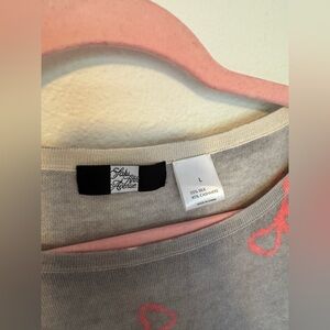 Gorgeous sweater than appears like new but does have a few signs of discoloration and a snag - please review photos. These marks are very light and hard to spot. Super soft, lightweight material blend of silk and cashmere, and 3/4 sleeves. Offers welcome!
