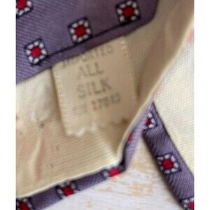 Saks Fifth Avenue Silk Mens Tie Lavender Purple Red White & Blue Diamond Pattern