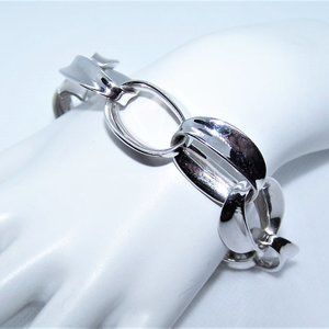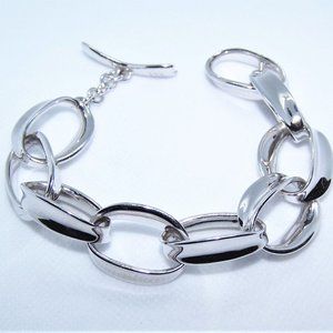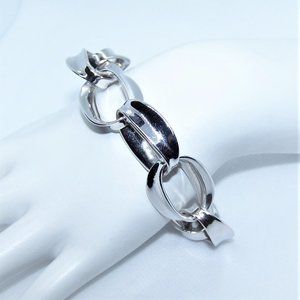 FINAL MARKDOWN - Manufactured for Saks Fifth Avenue, may I offer this oval link bracelet with a "dog bone" toggle clasp closure. Length of the bracelet is 8" making the wearable length about 7-3/4" (with movement on the wrist). Width of the links is about 3/4" and weight is a hefty 54.2 grams. Excellent condition with a VERY shiny finish due, no doubt, to a rhodium overlay. Just fabulous!