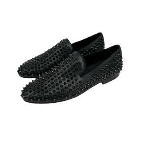 Saks Fifth Avenue Studded/Spiked Mens Loafers Shoes Black Leather RONALD Size 12