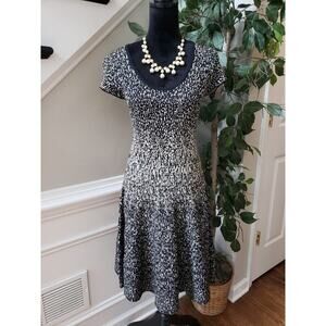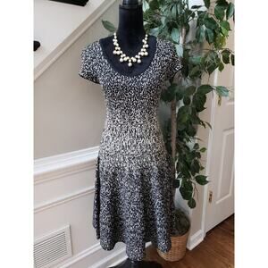 Saks Fifth Avenue Sweater Dress Women's S Black White Geometric Knit Scoop Neck