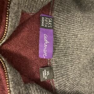 Saks Fifth Avenue Sweater Mens XL 100% Cashmere 1/4 Zip Pullover Luxury Preppy