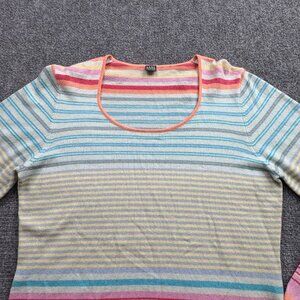 Saks Fifth Avenue Sweater Womens L Rainbow Hippie Multicolor Striped Scoop