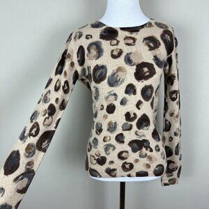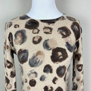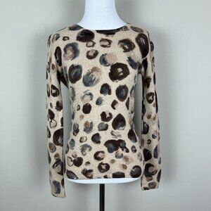 Saks Fifth Avenue Sweater Womens Small Beige 100% Cashmere Crew Neck Abstract S
