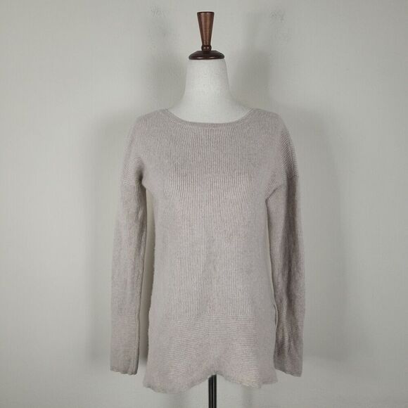 Saks Fifth Avenue Sweater XS Beige Cashmere Ribbed Comfy Cozy Minimalist Hi Lo