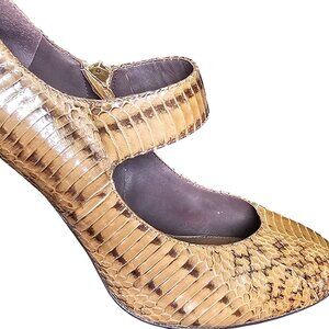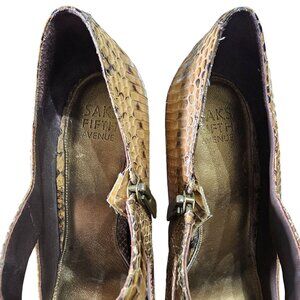 Saks Fifth Avenue Tan Snakeskin Leather Mary Jane shoes Gold Buckle size 9.5