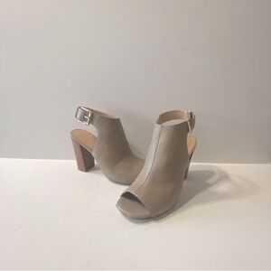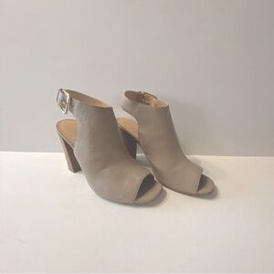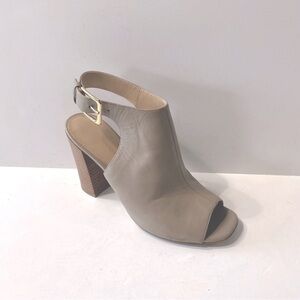 Saks Fifth Avenue Tan Soft Leather Peep Toe Buckle Slingback Block Heels Size 8