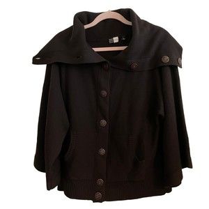 Large button up collar that can be work fully buttoned or opened more like a shawl