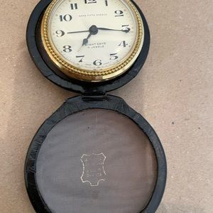 Vintage Saks Fifth Avenue travel clock. Mount & clock needs repair.
