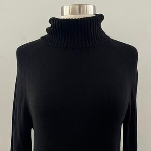 Saks Fifth Avenue Turtleneck Dress Wool Cashmere Quiet Luxury Modest Black M