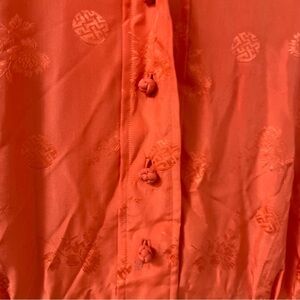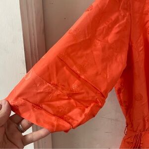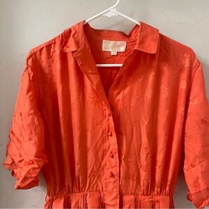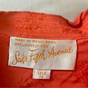 Saks Fifth Avenue Vintage 1950’s Oriental Orange Silk Pleated Swing Dress Sz 16
