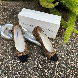 Saks Fifth Avenue Vintage Leopard Print Suede Cap Toe Low Heels