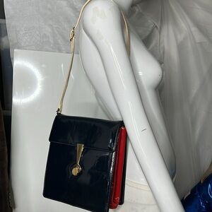 Saks Fifth Avenue Vintage Patent Leather Navy Red Beige Shoulder Bag