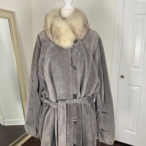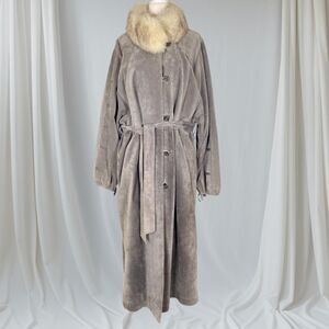 Saks Fifth Avenue Vintage Suede Leather Penny Lane Trench Coat Made in Canada L