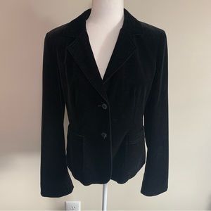 Smart velvet 2 button blazer by Saks fifth Avenue. Pockets up front with cuff buttons. Some light pilling inside lining see last picture but overall excellent condition!