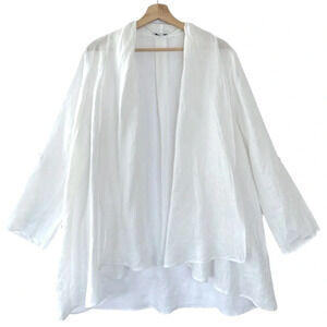 Saks Fifth Avenue White 100% Linen Open Front Shawl Collar Loose Fit Tunic Top