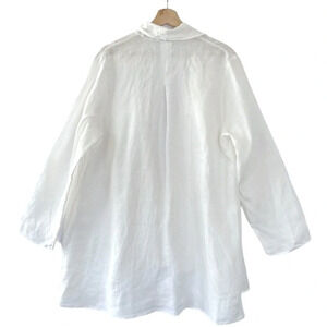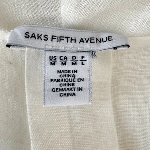 Saks Fifth Avenue White 100% Linen Open Front Shawl Collar Loose Fit Tunic Top Size Medium