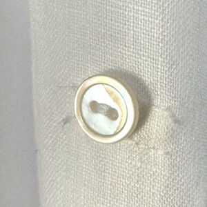 This Saks Fifth Avenue Top is constructed In 100% Linen white fabric. It features a open front, shawl collar, long sleeves with rool tab, and a long swingy A line fit. This is coastal, boho, coastal grandma, summer cover up, artsy, lagenlook, cottagecore, linen layers, elegant, classic, timeless, quiet luxury, oversized, loose fit vibes.