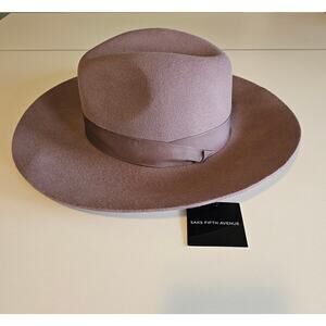 Saks Fifth Avenue Wide Brim Wool Fedora Mauve Pink NWT